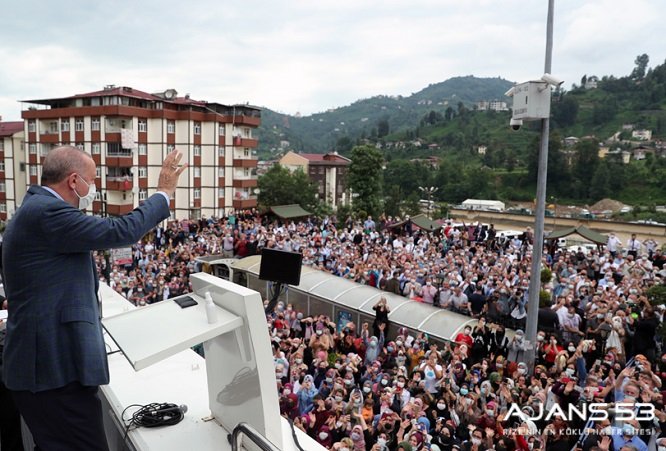 Alanda toplanan vatandaşların Kurban Bayramı’nı kutlayan Cumhurbaşkanı Erdoğan, hem Rize hem Artvin'deki sel ve afetler sebebiyle buruk bir bayram geçirdiklerini, dün Artvin'in Arhavi ilçesinde yaşanan dere taşkını nedeniyle hasar oluştuğunu söyledi.