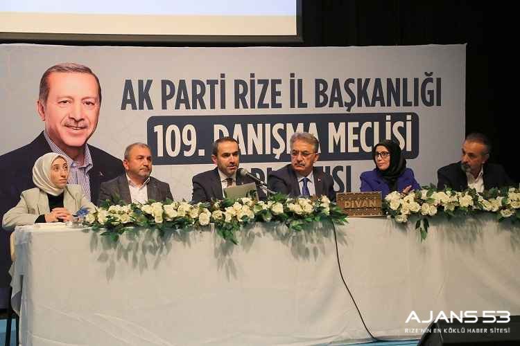 AK Parti Rize İl Başkanlığı 109. İl Danışma Meclis toplantısı AK Parti Genel Başkan Yardımcısı Rize Milletvekili Hayati Yazıcı, AK Parti Rize Rize İl Başkanı İshak Alim, AK Parti  Rize önceki dönem Milletvekili Nusret Bayraktar ve teşkilat mensuplarının katılımıyla İsmail Kahraman Kültür Merkezi’nde gerçekleştirildi.