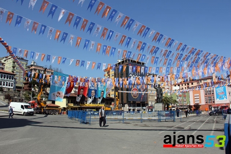 İki gündür devam eden hazırlıklar ardından dün akşam sahne kurularak güvenlik önlemleri alındı. Bütün tedbirlerin dikkatli bir şekilde alındığı kent meydanında polis barikatları ile miting alanı çevrildi.