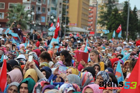 "Şımarıklık ve nankörlük karşısında sabırla ve metanetle durduğunuzu da görüyorum. Bu sağlam ve sabırlı duruşumuzu asla bozmayacağız. Bu sokağa dökülenler, bu vandallar, bu yağmacılar aslında milletin öfkelenmesini, sabrının taşmasını, milletin karşılarına çıkmasını istiyorlar. Bunların kurduğu tuzağın asıl hedefi bu. Gezi`de, 17-25 aralık olaylarında da Rize`ye de girmek istemediler mi`Rize ne yaptı`gereğini yaptı ve geldikleri gibi gittiler. Kim ki öfkesine hakim olamazsa bunların karşına öfke ile nefretle çıkarsa bunların tuzağına düşmüş olur, oyununa gelmiş olur. Askerimiz, polisimiz, istihbarat birimlerimiz bunlarla gerektiği gibi mücadele ediyorlar. Sokaktaki bu teröristlere olduğu kadar onları sokağa iten ve onların arkasına saklanan siyasetçi kılığındaki korkaklardan da bunun hesabı sorulacaktır bunu bilmenizi istiyorum. Bir taraftan `sokağa dökülün diyeceksin`, öbür taraftan `özgürlük, barış ve demokratik hakkı kullanın` dedik, `şiddete başvurun demedik` bu nasıl bir siyasi sorumluluktur. Böyle bir şey olabilir mi`Siz neden rahatsız oldunuz`Mutluluk, huzur, refah bu mu sizi rahatsız etti. Düne kadar Güneydoğu ve Doğu Anadolu`nun yaşam koşulları ortadaydı. 12 yıldır bu ülkede ayrım yapmaksızın 780 bin kilometrekareyi muhasır medeniyetler seviyesine çıkarma gayreti ortada dururken, buradan sesleniyorum, eğer bugün bölgeye yatırımcı gelmiyorsa sizin adınıza konuşanlar yüzünden yatırımcı gelmiyor. Ne olacak adam gelip yatırım yapıp da ondan sonra fabrikasının yanmasını mı bekleyecek. Devletin bankalarını yakacak yıkacaksın ondan sonra utanmadan sıkılmadan burada niye banka yok mu`diyeceksin. Okulları,hastaneleri yakıyorsunuz, huzurevlerini yakıyorsunuz, çocukların kaldığı pansiyonları yakıyorsunuz. Siz nasıl siyasetçisiniz`nasıl bir insansınız`Kobani ile bunların ne alakası var`Dert başka. Ağrı Patnos`un ne alakası var `Patnos`ta belediye binasını yaktılar, belediye binası senin neyini rahatsız etti ya."