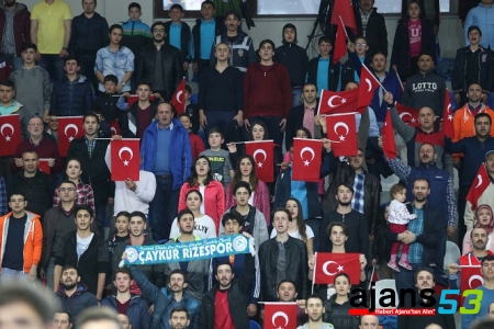 Seyirciler terörü protesto eden sloganlar atarken, tribünlerde tarihte kurulmuş Türk devletlerinin bayrakları açıldı.