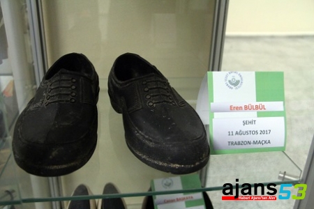 Trabzon'un Maçka ilçesinde Jandarma ekiplerine teröristlerin yerini gösterdiği esnada çıkan çatışmada şehit olan 15 yaşındaki Eren Bülbül’ün kara lastikleri Bolu’da Yaşayan Ayakkabı Müzesi’nde sergilenmeye başlandı.