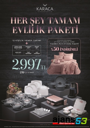 Sevdiklerinizle paylaşacağınız en değerli anlara ortak olan Karaca, “Her Şey Tamam Evlilik Paketi” ile yeni ev kuracakların ihtiyaçlarını tek seferde karşılıyor.