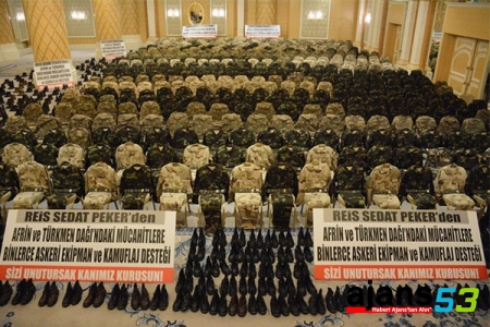 ''REİS SEDAT PEKER’den Pkk, Pyd ve Esat’ın güçleriyle savaşan AFRİN ve TÜRKMEN dağındaki mücahitlere binlerce adet askeri yazlık kamuflaj, bot ve ekipman desteği.''