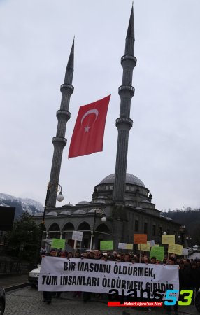 Grup, en önde "Bir insanı öldürmek bütün insanları öldürmek gibidir" ayetinin yazılı olduğu afişi taşıyarak Köprübaşı mevkisine kadar sessizce yürüdü.