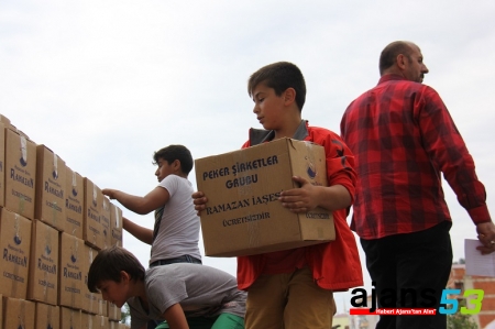 Rizeli iş adamı Sedat Peker, Rize'de Ramazan ayı dolayısıyla 3 TIR dolusu yardım paketi dağıttı.