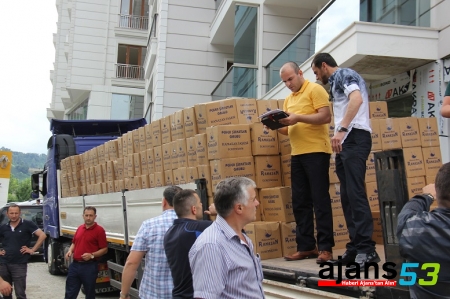 Rize merkeze bağlı Gündoğdu Mahallesi'nde gerçekleşen yardım dağıtma programında 3 TIR dolusu yardım paketi, Rize mahalle ve köy muhtarları vasıtasıyla ihtiyaç sahiplerine ulaştırıldı.