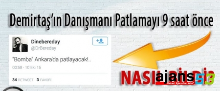 Ankara’da gerçekleşen patlamayı, HDP Genel Başkanı Selahattin Demirtaş’ın danışmanının dün gece, patlamadan yaklaşık 9 saat önce twitter’dan duyurduğu ortaya çıktı.