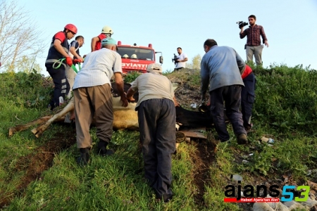 Olay yerine gelen itfaiye ekipleri ile vatandaşlar, yaklaşık yarım saat süren çalışmanın ardından ineği, bağlanan halatlar yardımıyla çekerek kurtardı.