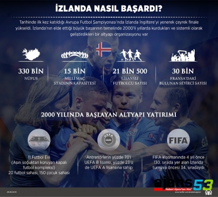Tarihinde ilk kez katıldığı Avrupa Futbol Şampiyonası’nda İzlanda İngiltere’yi yenerek çeyrek finale yükseldi. İzlanda’nın elde ettiği büyük başarının temelinde 2000’li yıllarda kurdukları ve sistemli olarak geliştirdikleri bir altyapı organizasyonu var.