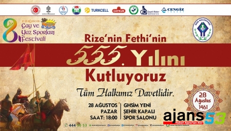Pontus Rum İmparatorluğunun elinde olan Rize’mizin 1461 yılında Fatih Sultan Mehmet tarafından Feth edilişinin 555. Yılı kutlama etkinlikleri bu yıl ilk kez Rize Belediyesi tarafından ilimizde gerçekleştirilecek.