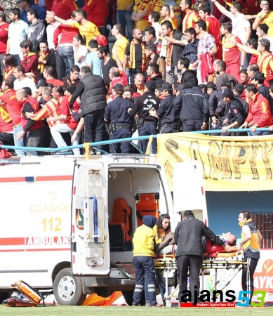 Yaklaşık 200 kişilik grubla Pazar'a gelen sarı - Kırmızılı takımın taraftarları Rizeli futbolcu Emrah'ın attığı gol sonrası bulundukları tribünden aşağıya doğru yüklenme sonucu çöktü. 3 Kişinin yere düştüğü olayda bir Göztepe taraftarı ağır yaralandı.