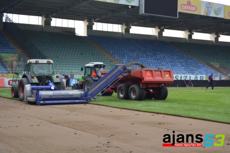 Hibrit uygulamasına başlanan Çaykur Didi Stadyumunda hibrit çim ekimini İngiltere’den gelen 7 kişilik özel bir ekip yapıyor. Yakında sentetik hibrit lifler makinelerle zemine enjekte edilecek. Serilen doğal çimler 20 milyon yapay lifle güçlendirilmiş sentetik çimle harmanlanıyor. Bu işlem tamamnen lazer destekli özel bir makine ile yapılıyor