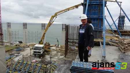 Hazar Mahallesi'nde ÇAYKUR tarafından AHES İnşaat firmasına yaptırılan dünyanın en modern, teknolojik ve çevreci çay paketleme fabrikası inşaatı sürüyor. 55 metredeki kata beton dökümü sırasında mikserin pompası kata ulaşmadı. Bunun üzerine Rizelilerin pratik zekası devreye girdi. İnşaat yetkilileri 120 ton taşıyabilen vinç yardımıyla 27 tonluk beton mikser kamyonunu 40 metre yüksekteki 3'üncü kata çıkardı. Zeminden bir beton mikserinin 3'üncü kattaki beton mikserine ulaştırdığı beton 55 metre yüksekteki katlara dökümü yapıldı. Beton mikserini binanın 3'üncü katında görenler şaşkınlıklarını gizleyemedi.