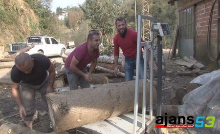 Rize'de 'Rambo' lakaplı Ramazan Çepni, 203 kilogram olarak tartılan ağaç kütüğünü sırtında taşımayı başardı.
